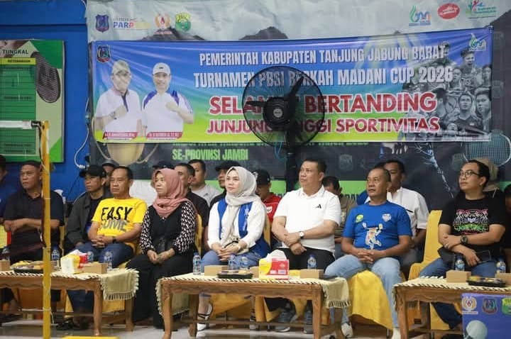 TANJAB BARAT-JAMBINTIKA-COM- Bupati Tanjung Jabung Barat Drs. H. Anwar Sadat, M.Ag., didampingi Ketua TP PKK Kabupaten Tanjung Jabung Barat Hj. Fadhilah Sadat, S.H., menghadiri sekaligus membuka secara resmi Turnamen Kicau Mania UAS Cup Berkah Madani Tahun 2026 yang digelar di Alun-Alun Kota Kuala Tungkal,…
